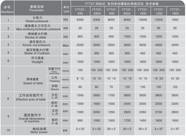 產品介紹:性能特點:計算機優化結構設計,為四柱式結構:四柱式結構簡單、經濟、實用;液壓控制系統采用插裝閥集成系統,動作可靠、使用壽命長、液壓沖擊小、減少了連接管路與泄漏點,液壓集成系統采用獨立控制單元;采用按鈕集中控制,具有調整、半自動(半自動可分定程單次和定